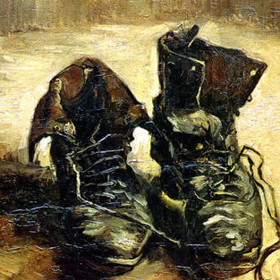 هوامش ومراجع: 1ـ في تاريخ الفن، الشكلية هي دراسة الفن من خلال تحليل ومقارنة الشكل والأسلوب. تشمل مناقشته أيضًا طريقة صنع الأشياء وجوانبها البصرية البحتة. في الرسم، تؤكد الشكليات على تكوين عناصر مثل اللون والخط والشكل والملمس والجوانب الأخرى للإدراك بدلاً من السياق التاريخي والاجتماعي. في أقصى الحدود، تفترض الشكليات في تاريخ الفن من حيث المبدأ أن كل ما هو ضروري لفهم عمل فني موجود في المنجز نفسه، دون اعتبار أي سياقات أخرى، بما في ذلك سبب إنشائه، والسياق التاريخي وحياة الفنان، أي أن الجانب المفاهيمي له أهمية ثانوية. 2ـ مارتن هايدغر، أصل العمل الفني، ترجمة أبو العيد دودو، ط 1، منشورات الجمل 2002 3ـ كان مايير شابيرو (23 سبتمبر 1904 - 3 مارس 1996) مؤرخًا للفن الأمريكي من أصل ليتواني، والمعروف أنه صاغ منهجيات تاريخية جديدة للفن تتضمن منهجًا متعدد التخصصات لدراسة الأعمال الفنية. خبير في فنون العصر المسيحي والعصور الوسطى والحديثة، استكشف شابيرو الفترات والحركات التاريخية للفن، مع إيلاء اهتمام وثيق للبناء الاجتماعي والسياسي والمادي للأعمال الفنية.يشتهر أسلوب شابيرو الأكاديمي بتغييره جذريًا في مسار تاريخ الفن، وكان ديناميكيًا وشارك علماءًا وفلاسفة وفنانين آخرين. أستاذ نشط، محاضر، كاتب وإنساني، له مراسلات مع الفيلسوف الألماني هيدجر في شأن أحذية فان جوخ. حافظ شابيرو على علاقة مهنية طويلة مع جامعة كولومبيا في نيويورك كطالب ومحاضر وأستاذ. 4 ـ في عام 1968، نشرت دراسة مايير شابيرو (The Still Life as a Personal Object. A Note on Heidegger and Van Gogh). ستؤدي المراسلات، من خلال نص متداخل، بين الفيلسوف ومؤرخ الفن، إلى إثارة جدل بات مشهورا، لدى الأوساط الفلسفية والفنية، كان الشاهد عليه، لوحة لفان جوخ، زوج من الأحذية رسمت في عام 1886. 5- J.Derrida, La vérité dans la peinture, Paris, champs-Flammarions, 1978, p. 334 6 ـ نشر هذا النص بالفرنسية بمجلة DIALOGUE ، الصفحة 44ـ46، عدد 50، 4/1980، وهو مأخوذ من مجلد "الفن الحديث، في القرنين التاسع عشر والعشرين"، من تأليف مايير شابيرو. 1960، الأكاديمية الأمريكية ومعهد الفنون والآداب، نيويورك، منشور رقم. 189 – الخطاب الملقى في الاجتماع السنوي، 20 مايو 1959، ونشر لأول مرة في "وقائع الأكاديمية الأمريكية للفنون والآداب والمعهد الوطني للفنون والآداب، السلسلة الثانية، 10، 1960، ص. 316-323.